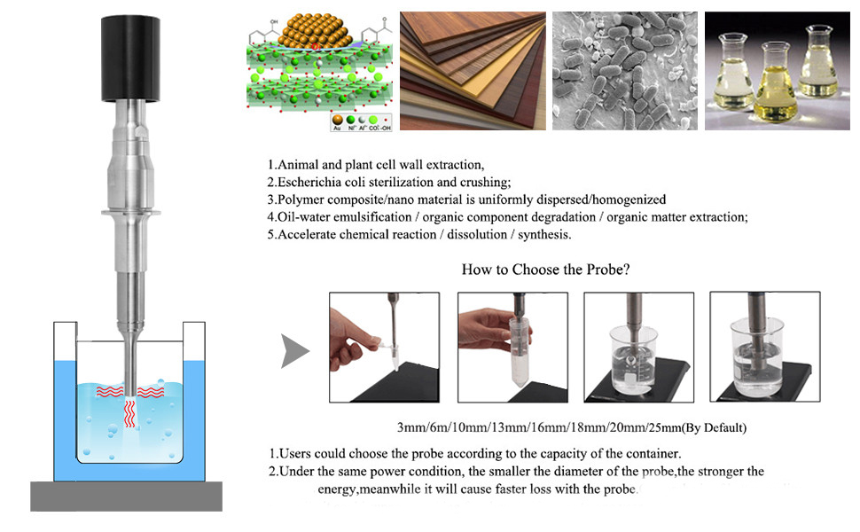 4). Life Science Field: In the field of life sciences, used for cell disruption, extraction of active cells, protein, cell, bacteria, virus tissue breaking etc.